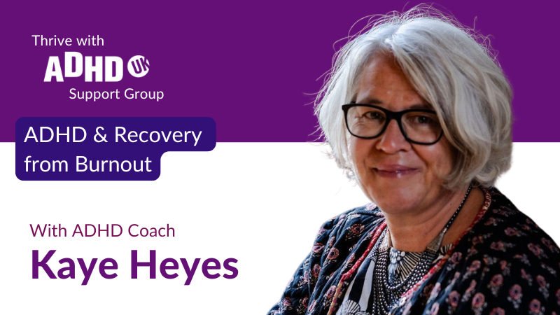 Join ADHD coach and facilitator Kaye Heyes for a monthly 60-minute group exploring what recovery and renewal can look like for ADHD minds and bodies.